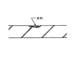打設したコンクリートの表面に砂利が露出している欠陥部分。「豆板」ともいう。
